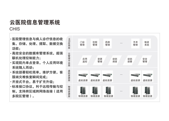 CHIS云醫(yī)院信息管理系統(tǒng)醫(yī)用管理信息與病人診療信息的收集、存儲、處理、提取、數(shù)據(jù)交換功能;高效安全的數(shù)據(jù)庫管理系統(tǒng),超強(qiáng)聯(lián)機(jī)處理控制能力;實(shí)現(xiàn)院內(nèi)單點(diǎn)登錄,個人應(yīng)用環(huán)境系統(tǒng)隨人而動;系統(tǒng)部署輕松簡單,維護(hù)方便,客服端災(zāi)難恢復(fù)瞬間完成;開放式平臺,易于擴(kuò)充升級;標(biāo)準(zhǔn)接口協(xié)議,利于遠(yuǎn)程傳輸與控制,支持跨區(qū)域跨網(wǎng)絡(luò)連接(適用多院區(qū)管理)。