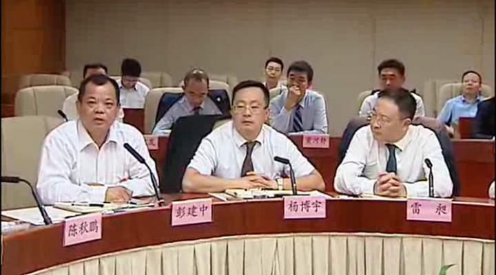 圖為董事長彭建中先生(左一)在政協(xié)會議上建言獻策