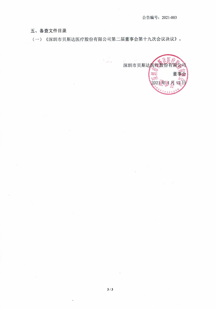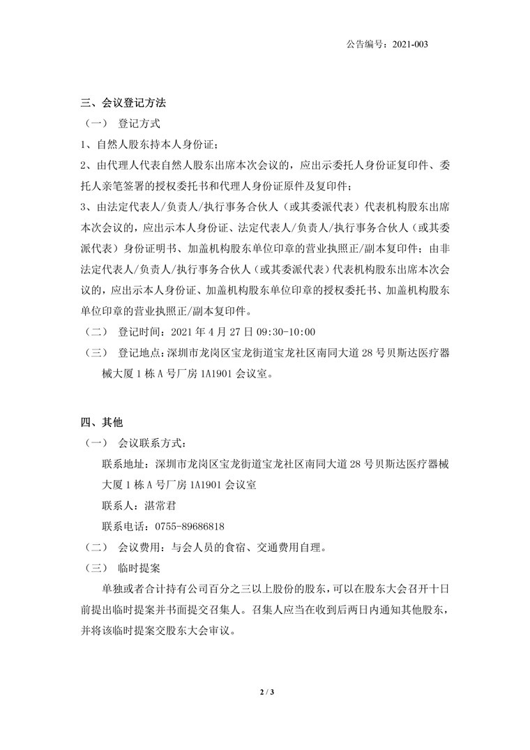 2021-003-貝斯達(dá)-關(guān)于召開2021年第二次臨時股東大會通知公告