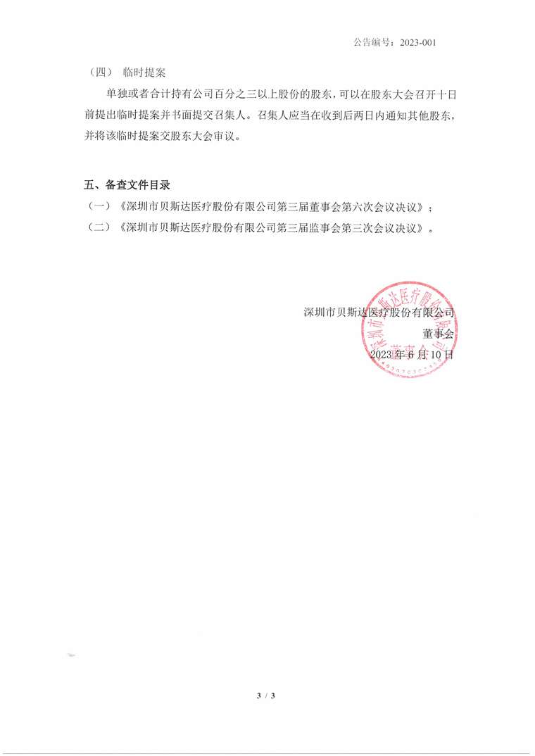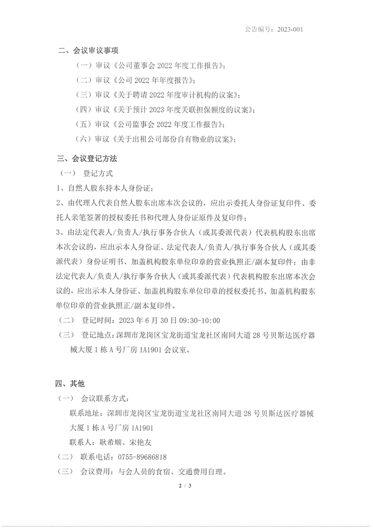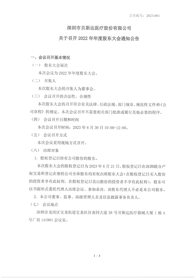 2023-001-貝斯達(dá)-關(guān)于召開2022年年度股東大會(huì)通知公告