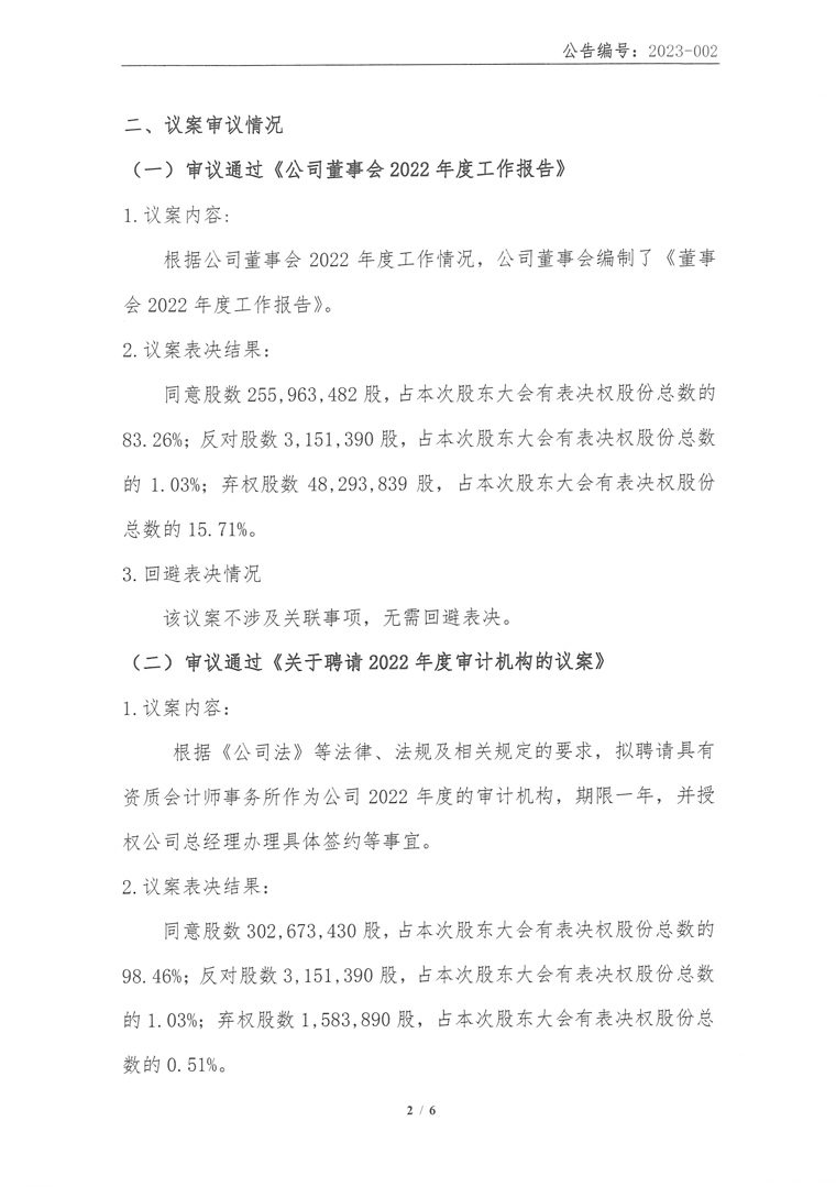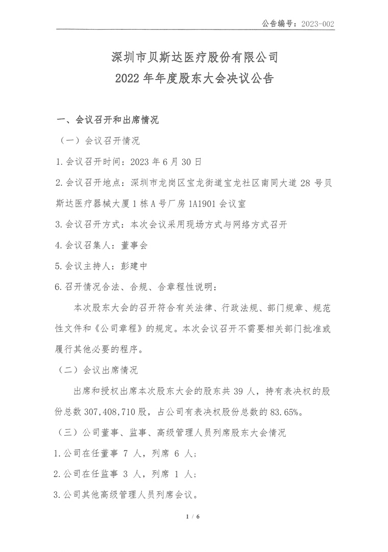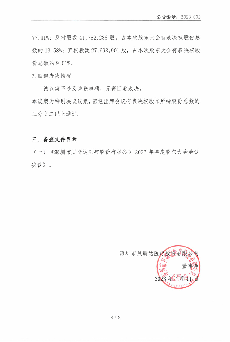 2023-002-貝斯達-2022年年度股東大會決議公告